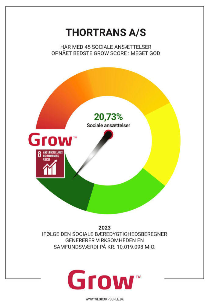Alle medarbejdere i Thortrans er med til at skabe et godt arbejdsmiljø, herunder også vores arbejde med vores sociale ansvar, som det også er berørt i afsnittet om GROW ovenover.